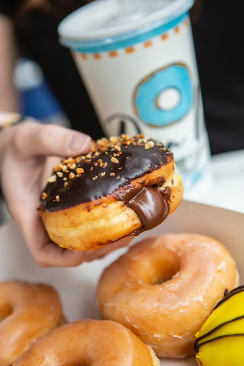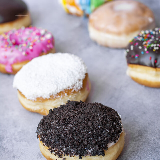 Elige tu donut preferido de entre toda nuestra variedad, desde el irresistible relleno de Oreo, ideal para los amantes del esta famosa galleta, hasta nuestro mítico de Nutella, para los más golosos, o el recién llegado relleno de galleta Lotus. También están los clásicos, glaseados o con chocolate, pistacho, fresa... Prueba el que más te guste, con relleno o con agujero, todos están buenísimos y son ¡enormes!